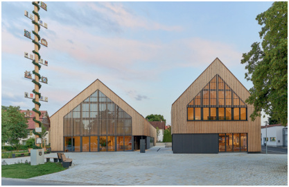 Wie erfolgreich dieser Kreativansatz ist, zeigen rund 40 Auszeichnungen, die f64 inzwischen für Projekte in und außerhalb des Allgäus erzielen konnte. Jüngstes Beispiel ist die neue Ortsmitte aus Gemeindesaal und Gasthof in Legau. Das Projekt gewann 2025 gleich drei Preise: den Deutschen Holzbaupreis, den iF Design Award sowie das Architektouren-Prädikat KlimaKulturKompetenz in der Kategorie Barrierefreiheit und Nachhaltigkeit.