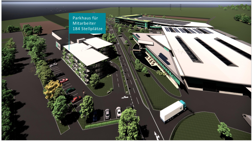 - pester pac automation (Wolfertschwenden): Dreigeschossiger Neubau mit Dach-PV; zweistöckige Tiefgarage (156 Stellplätze); 2022 vertikal begrüntes Mitarbeiterparkhaus (184 Stellplätze).