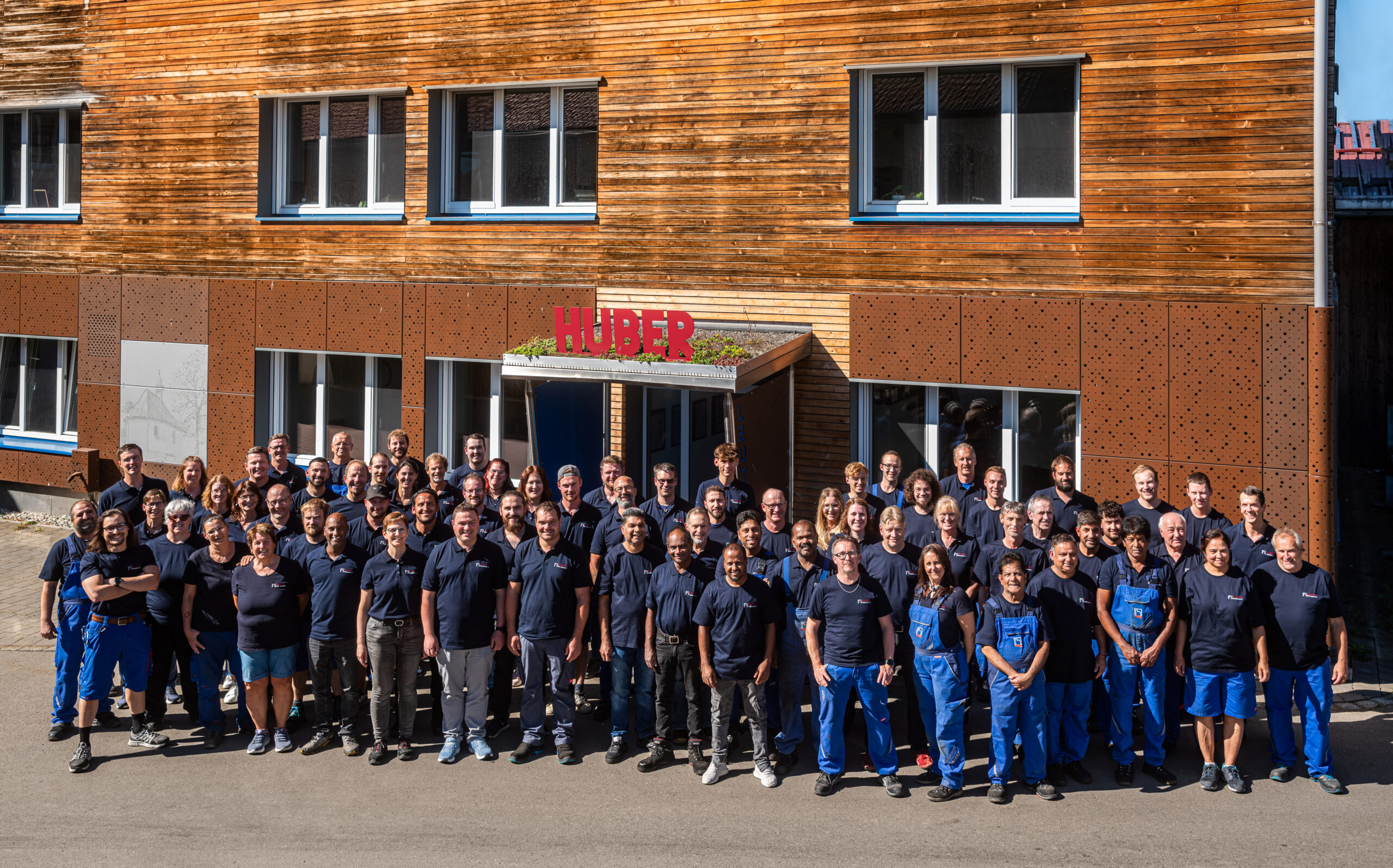 Nachhaltigkeit ist ebenfalls fest in der Unternehmensphilosophie verankert: Bereits vor 30 Jahren ließ Seniorchef Hans Huber die erste Photovoltaikanlage installieren. Heute sind alle Hallen mit PV-Anlagen ausgestattet und der innerbetriebliche Verkehr läuft elektrisch. Ein Zeichen für Umweltbewusstsein setzte das Unternehmen außerdem im Jubiläumsjahr mit dem Anlegen einer Streuobstwiese, auf der 40 Bäume alter Sorten gepflanzt wurden, die Vielfalt, Robustheit und die Verwurzelung in der Region symbolisieren.