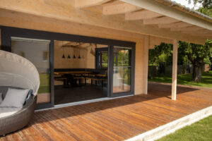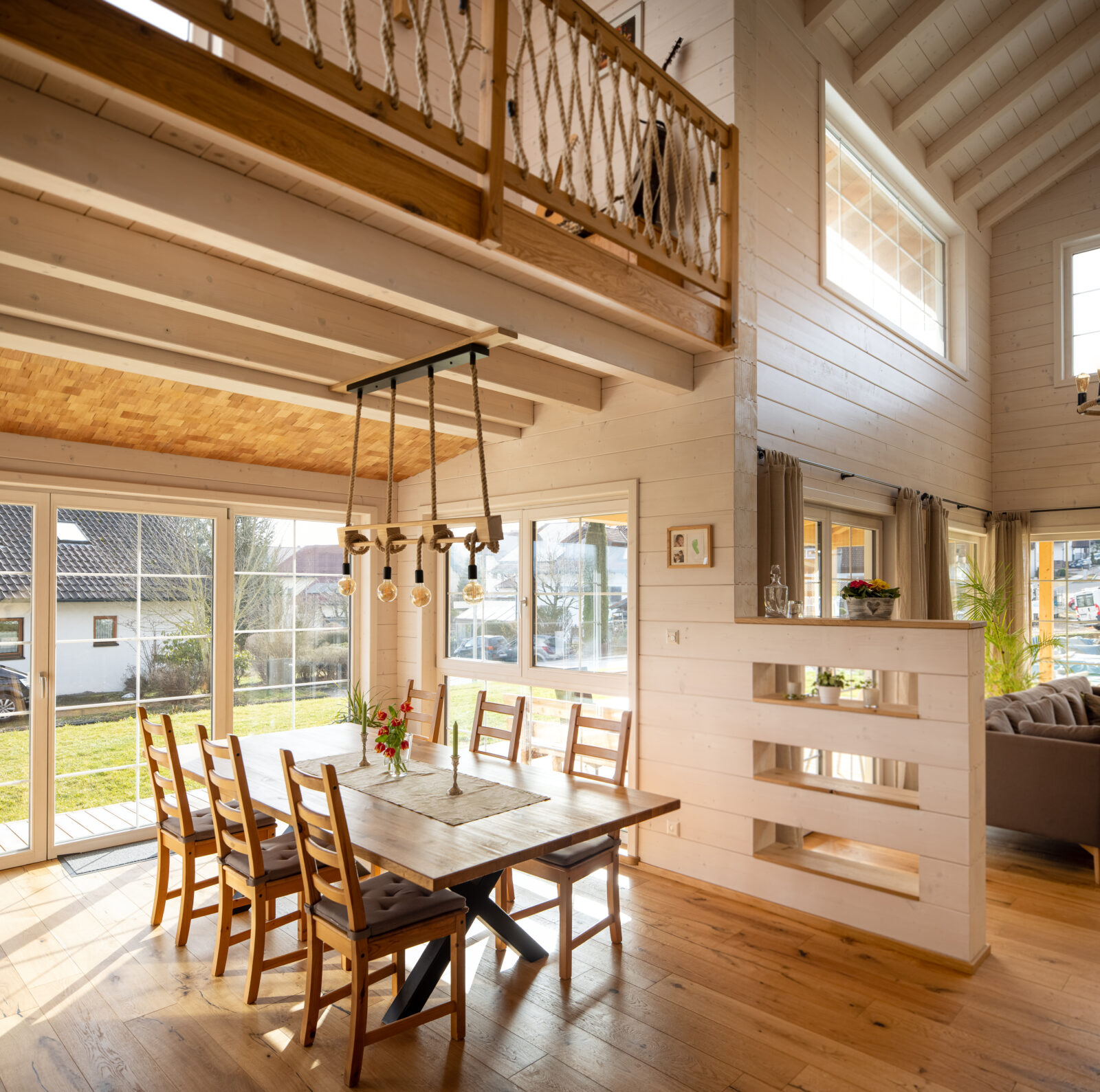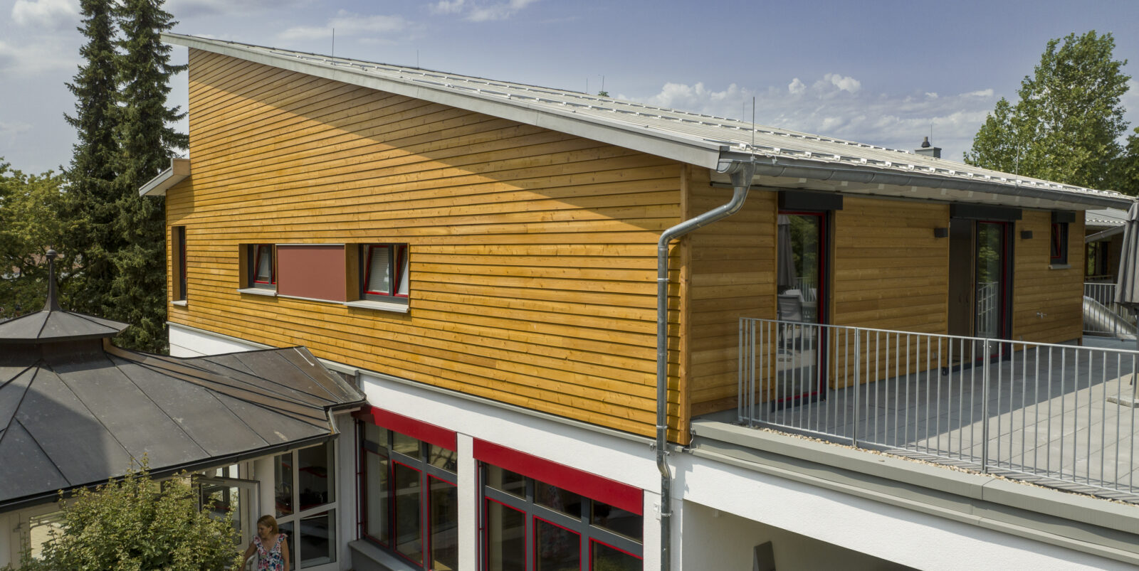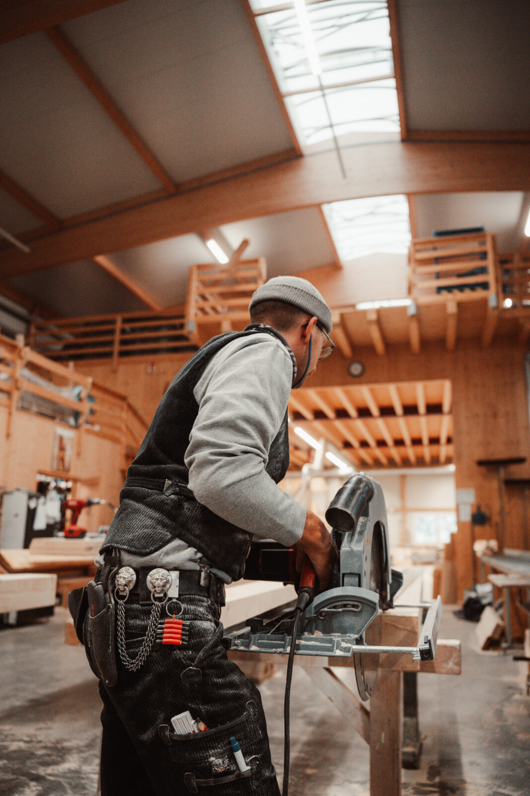 Aufgrund eigener Produktionshallen mit den zentralen Gewerken: Zimmerei, Schreinerei, Spenglerei profitieren Kunden von kurzen Wegen, sowie kurzen Bauzeiten durch hohe Vorfertigung und persönliche Betreuung durch eigene Projektleiter.