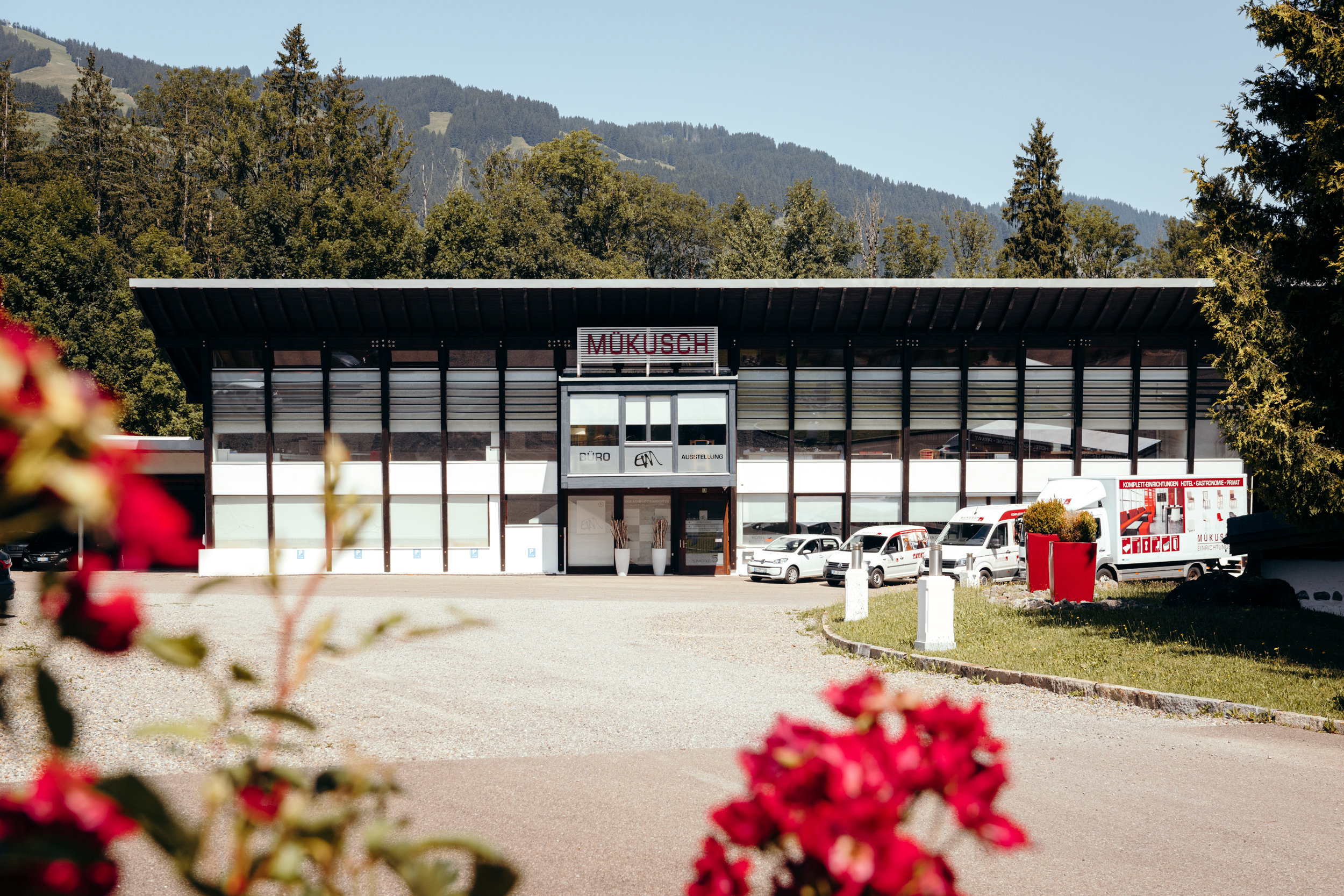 In Obermaiselstein führt eine mit Tujen gesäumte Einfahrt auf das prächtige Firmengelände zu einem der sicher ungewöhnlichsten Komplett- und Inneneinrichter Deutschlands: Mükusch Einrichtungen.